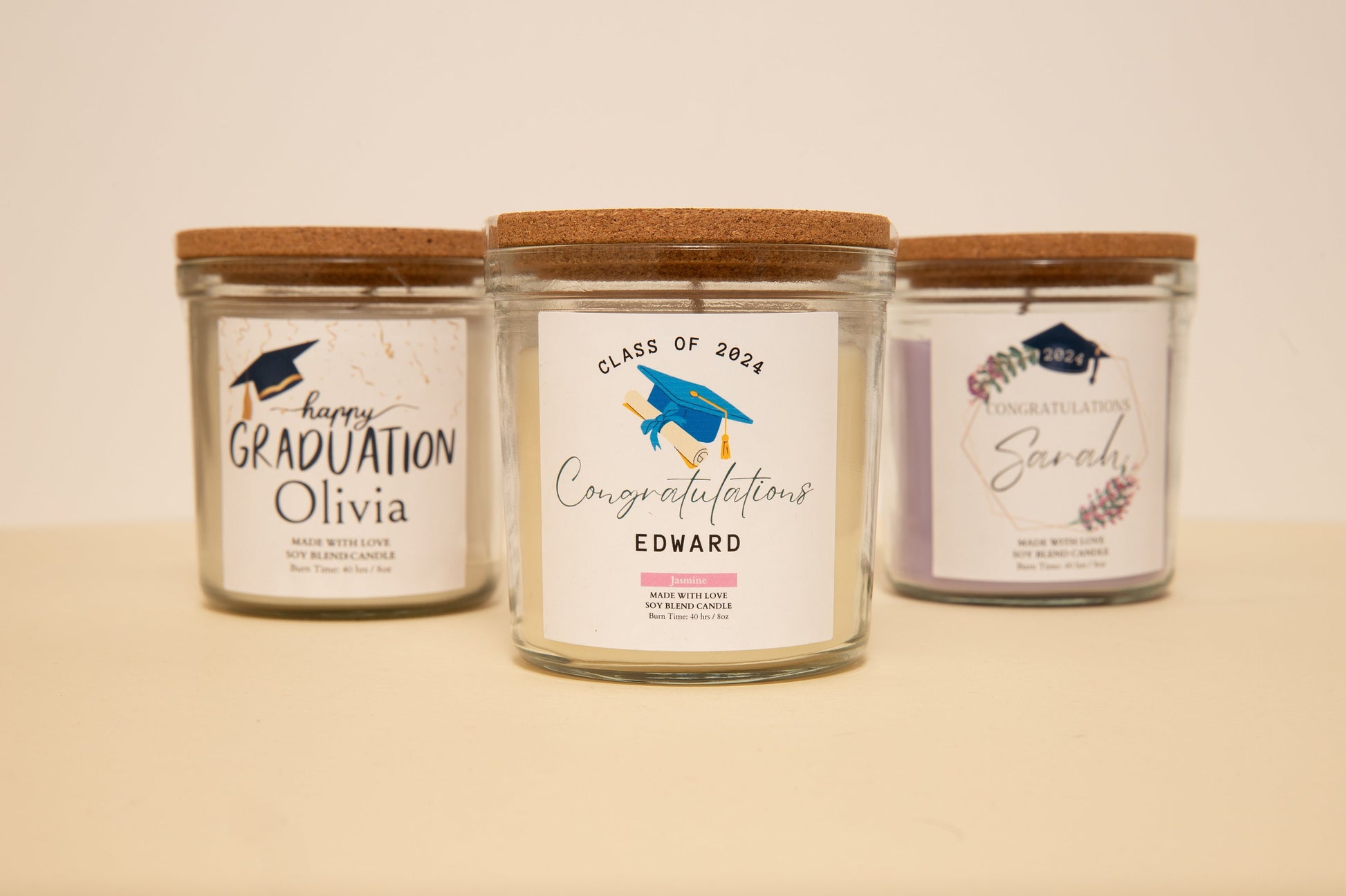 - 40hr/8oz Soy Blend Grad Candle - Personalized with name, date or initials