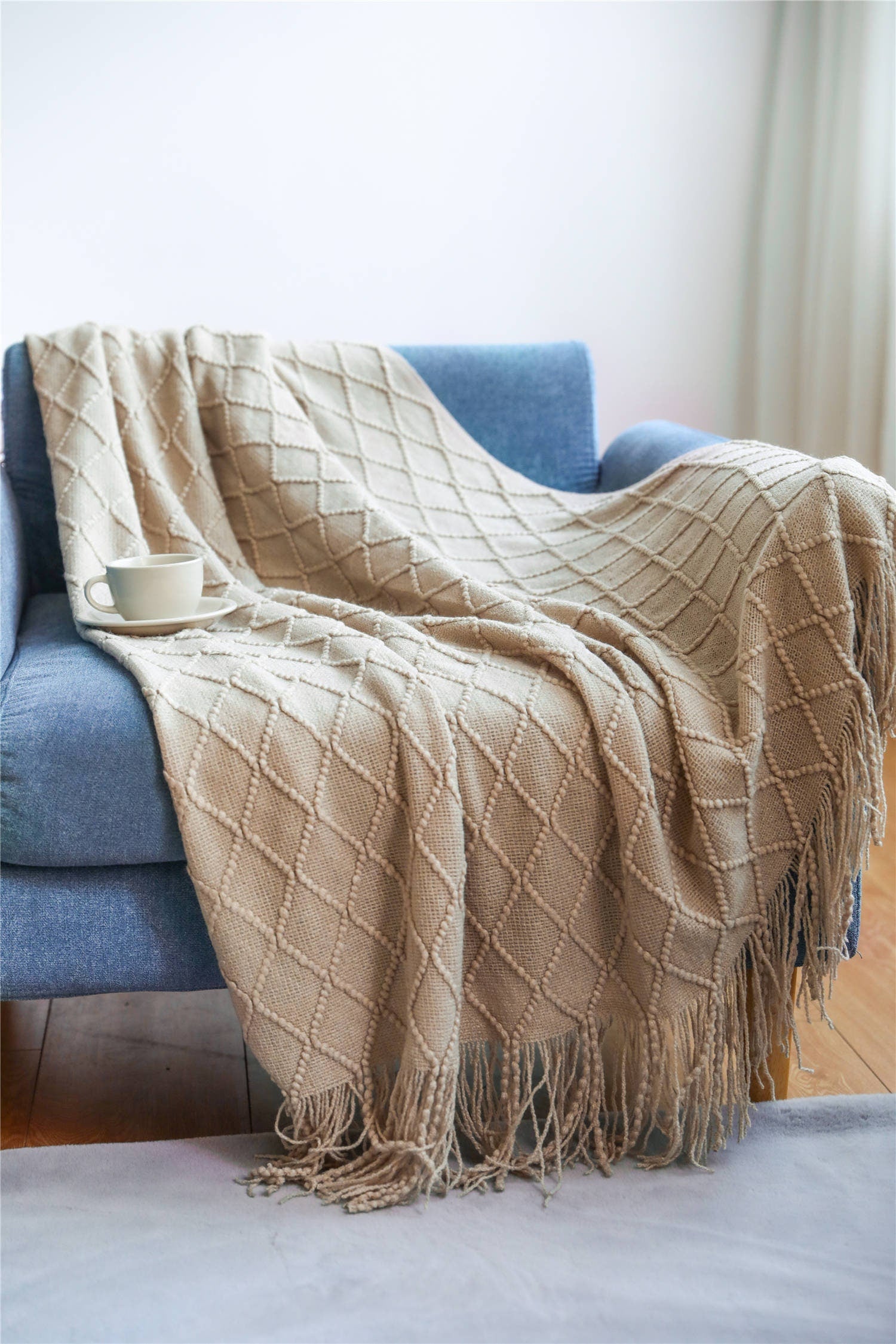 -Knitted Throw Blanket. Apx. 50" x 62"
